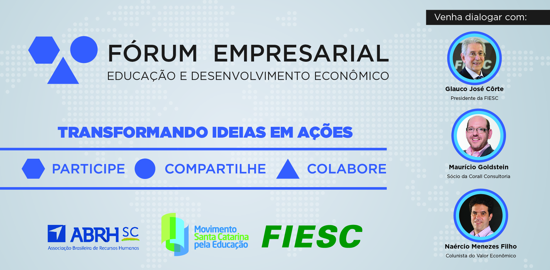 O evento é organizado pelo Câmara Regional do Movimento Santa Catarina pela Educação no Vale do Itapocu, em parceria com a Associação Brasileira de Recursos Humanos (ABRH/SC). É voltado a empresários, presidentes, diretores e executivos de empresas de todos os segmentos e portes.