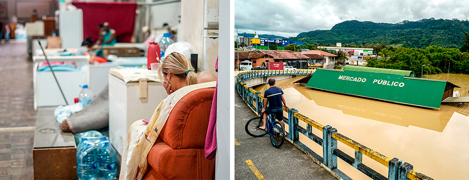 Seja pelo excesso ou pela falta de chuvas, Santa Catarina é um estado acostumado a extremos climáticos desde quando há registro. Em 1852, apenas dois anos após os primeiros imigrantes alemães fincarem base onde hoje é Blumenau, colonos registraram uma cheia de 16,4 metros no Rio Itajaí-Açu. Estiagens como a que castigou o Oeste do Estado até pouco tempo atrás também não são novidade. O problema é que as mudanças climáticas têm tornado estes eventos cada vez mais frequentes e severos, e o crescimento populacional faz com que os efeitos sejam sentidos em escala cada vez maior.