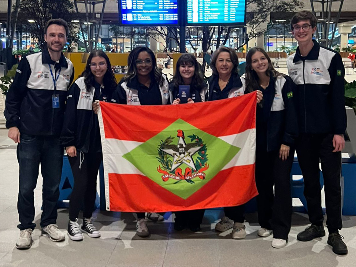 Florianópolis, 03.06.2025 – A equipe de robótica Interlagos, da Escola SESI de São José, na Grande Florianópolis, embarcou nesta terça (03) para Portugal, onde representará o Brasil no campeonato português da modalidade, nos dias 5 e 6 de junho.