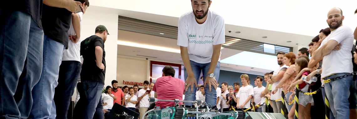 Florianópolis, 25.11.2017 – Robôs e sistemas automatizados construídos por estudantes de cursos técnicos em mecatrônica e automação industrial do SENAI em todo o Estado participaram neste sábado (25) em Joinville, de disputas em robótica móvel e air-hoquei. As competições envolveram projetos que foram desenvolvidos ao longo do ano em aulas práticas e teóricas e em atividades extracurriculares. Ao final, considerando os resultados das disputas e os relatórios de atividades, equipes da unidade de Lages venceram as duas categorias e ocuparam mais dois lugares nos pódiuns, ao lado de Joinville e Florianópolis. Ao longo da tarde de sábado, milhares de visitantes do Garten Shopping acompanharam o evento.