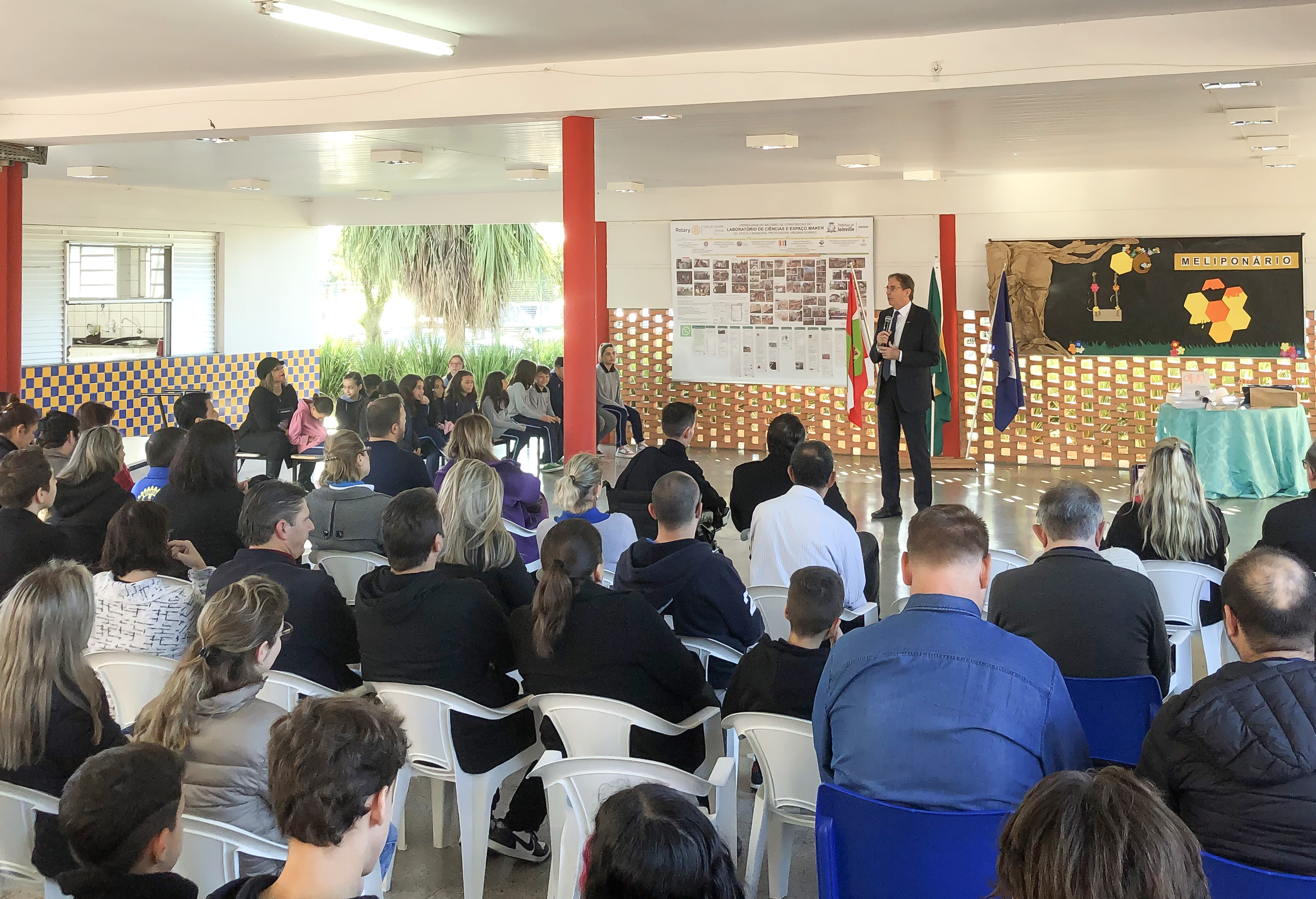 As entregas ocorreram durante o evento que marcou a inauguração do Laboratório de Ciências Engenheiro Aldo Borges e do Espaço Maker Engenheiro Mario Cezar de Aguiar, uma homenagem ao neto da educadora que dá nome à unidade, na qual 845 alunos são atendidos atualmente, no bairro Floresta. As áreas foram construídas de forma voluntária pela própria comunidade em parceria com a associação de pais, integrantes do Rotary Club de Joinville e participação da Secretaria de Educação da Prefeitura de Joinville, que providenciou materiais e acabamentos da obra.