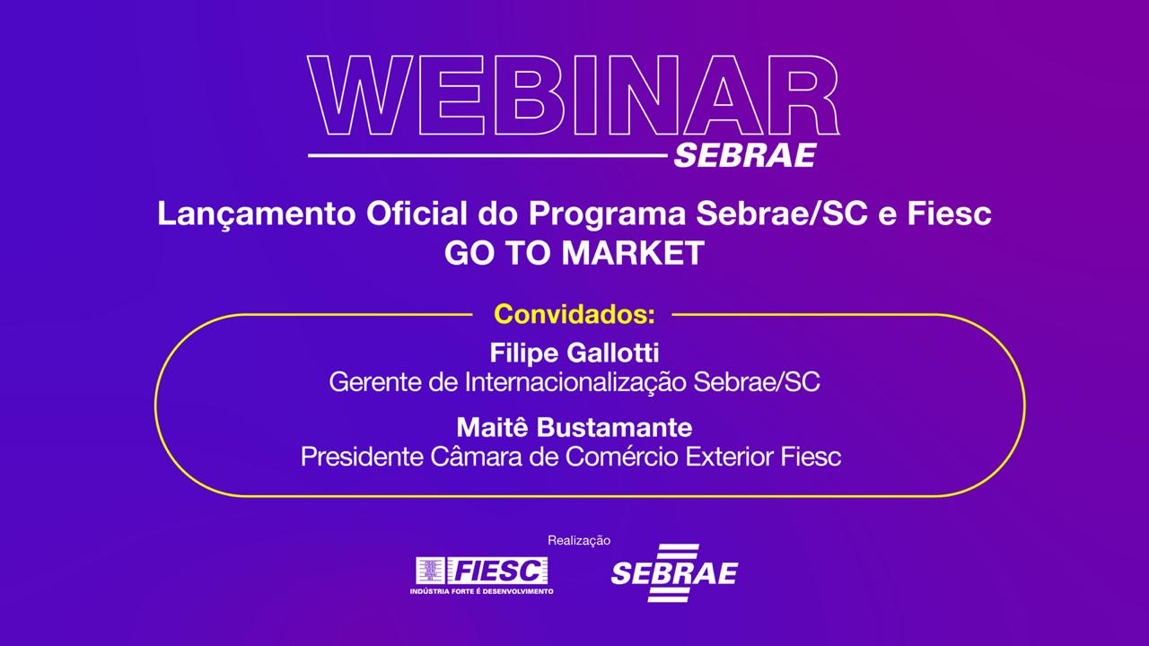 A presidente da Câmara de Comércio Exterior da FIESC, Maria Teresa Bustamante, é uma das convidadas do encontro. “A FIESC e o Sebrae, por meio do programa Go to Market oferecem, ao empresário catarinense um conteúdo virtual voltado a aumentar o grau de maturidade empresarial, por meio do conhecimento e da cooperação, visando aumentar sua competitividade. Temos convicção de que empresário preparado para enfrentar o concorrente internacional no mercado local é empresário pronto para vender seus produtos no estrangeiro com vantagem competitiva sustentável”, afirma.