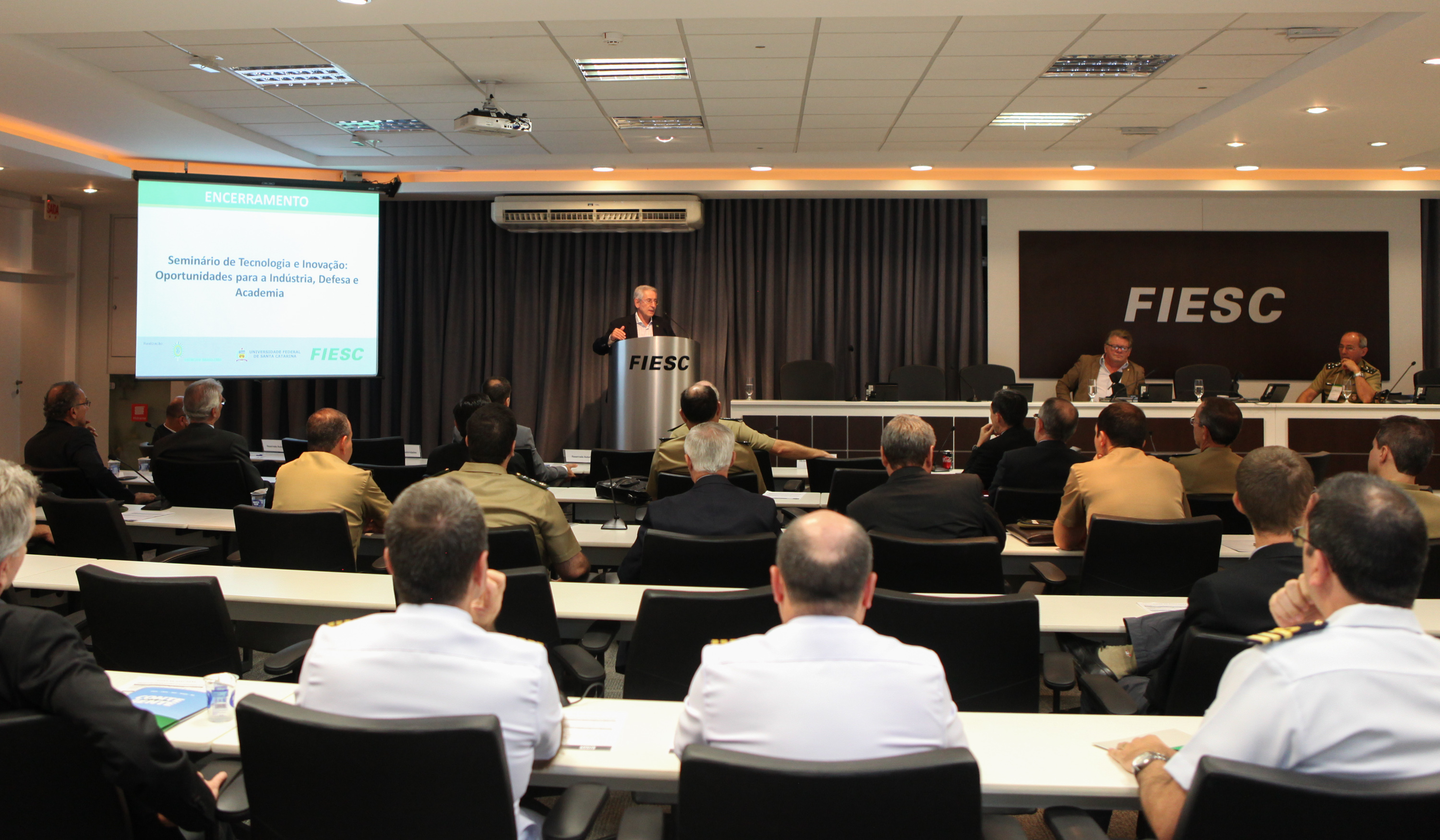 O presidente da FIESC chamou a atenção para o momento político atual de incertezas. “Estamos atentos às turbulências políticas que estão tomando conta do País, e que, de certa forma, o paralisam um pouco. Essa turbulência torna incerto os próximos dias e meses”, disse, salientando que FIESC, UFSC e Exército estão trabalhando, sem deixar de acompanhar o que ocorre. “Mas estamos fazendo nossa parte, trabalhando, planejando e desenvolvendo novas tecnologias e inovações não como um fim em si mesmo, mas com o objetivo de tornar o País mais desenvolvido, justo e ético. Os brasileiros merecem viver em um País assim. Estou convencido de que temos condições de sermos protagonistas importantes das transformações pelas quais o Brasil precisa passar”, concluiu.
