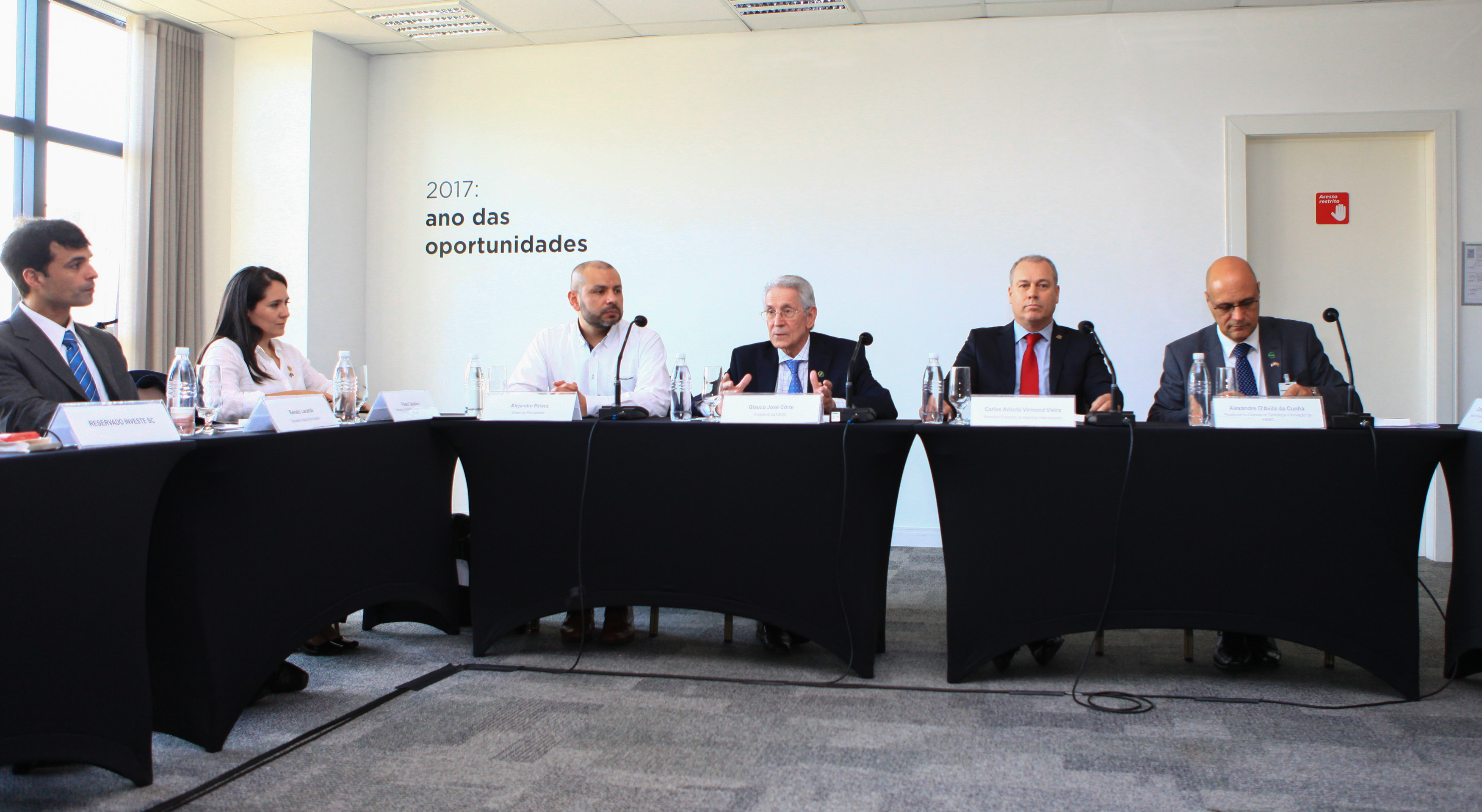 Segundo ele, há interesse em parcerias com a agroindústria catarinense. Alejandro relatou que recentemente visitou a região Oeste e conheceu o sistema cooperativista, o qual considera referência. Também disse que empresas dos segmentos têxtil e vestuário compram matéria-prima colombiana, assim como indústrias colombianas compram de Santa Catarina tecido para fabricação de moda beachwear.
