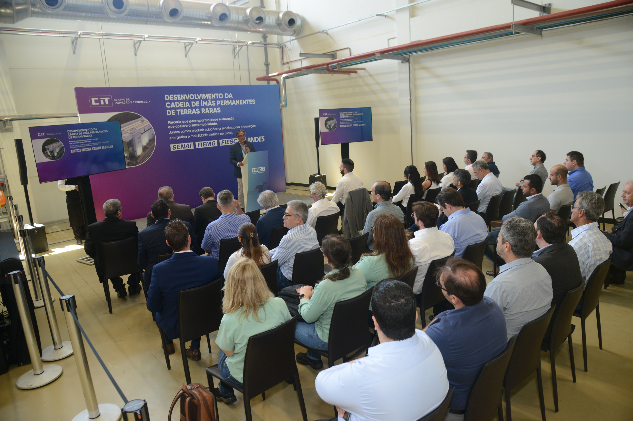 Para marcar o lançamento do projeto, foi realizado um encontro híbrido, com a parte presencial na Unidade do SENAI de Ímãs e Terras Raras (CIT SENAI ITR), na cidade mineira de Lagoa Santa. O evento, realizado no dia 26 de setembro, reuniu líderes da indústria e especialistas em inovação para discutir o desenvolvimento da cadeia de produção de magnéticos permanentes de terras raras no Brasil.