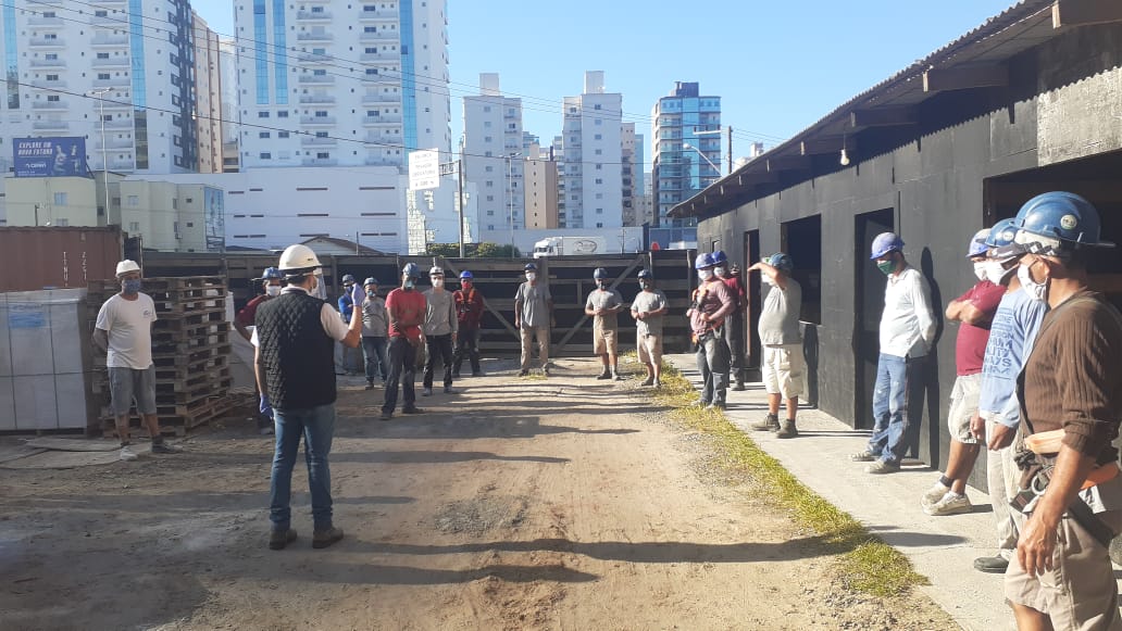 Em Balneário Camboriú e Itapema, equipes estão visitando os canteiros de obras para esclarecer dúvidas sobre o monitoramento da saúde dos trabalhadores