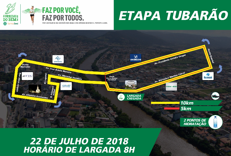 Em Tubarão, o SESI Corridas do Bem é realizado em conjunto com a Combemtu. A iniciativa pretende estimular, além da adoção de hábitos saudáveis e o contato entre os atletas, fazer o bem por meio da prática do voluntariado. Até o final do ano, as Corridas do Bem terão contabilizado 16 etapas e parte dos recursos gerados será revertida para instituições beneficentes.