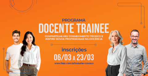 Se você tem experiência na indústria e vontade de compartilhar o que sabe, o Programa Docente Trainee SENAI 2026 pode ser o seu próximo passo. Aqui no SENAI, você conta com apoio e formação pedagógica para transformar seu conhecimento técnico em aprendizado para novas gerações de profissionais da indústria. Venha transformar a educação com a gente.